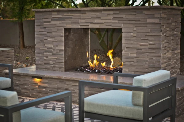 Most Phoenix homeowners choose gas because it’s clean-burning, low-maintenance, and easy to ignite—even on cooler desert evenings. Gas fire features also work well with contemporary designs and HOA guidelines. Wood-burning options offer a rustic ambiance but may be restricted in certain areas due to air-quality regulations. A local contractor can help you choose a system that fits your design, lifestyle, and city requirements.